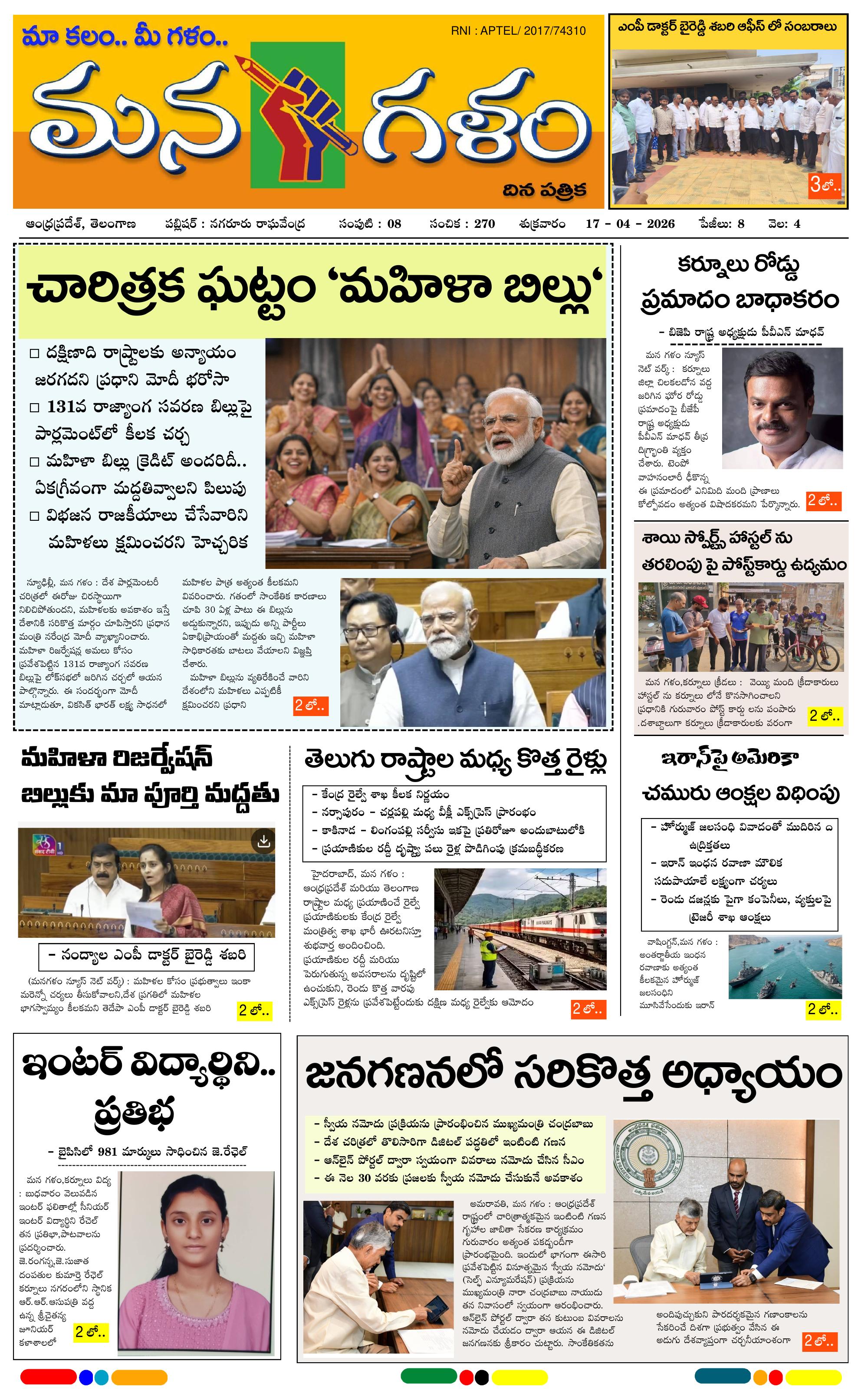 మనగళం డైలీ న్యూస్ పేపర్ లో రిపోర్టర్ కావాలనుకుంటున్నార అయితే ఈ నెంబర్ ను సంప్రదించండి. 9441336772.......